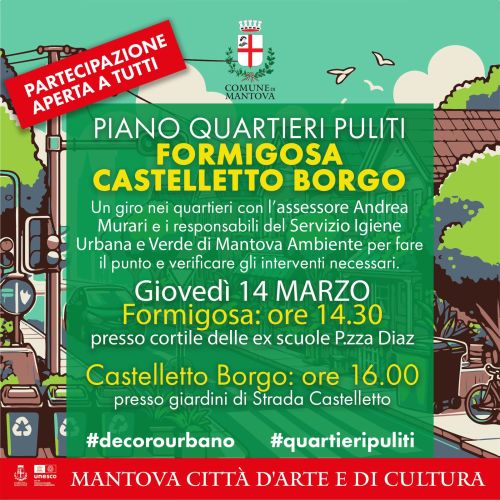 Dopo gli incontri di Colle Aperto-Cittadella e Lunetta, prosegue l’attività di verifica della situazione del verde pubblico e dei rifiuti nei quartieri cittadini da parte dell’assessore all’Ambiente del Comune di Mantova Andrea Murari, affiancato dai responsabili del Servizio Igiene Urbana e Verde di Mantova Ambiente e da alcuni agenti della Polizia locale, per fare il punto e verificare direttamente pulizia e decoro urbano.