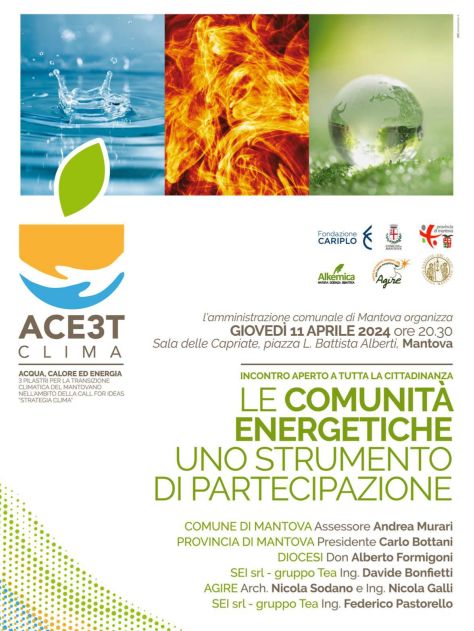 In piena condivisione di tali obiettivi, il Comune di Mantova con la Provincia di Mantova, la Diocesi e Tea spa SB hanno sottoscritto nel 2023 un “Protocollo di intenti per la promozione dell’efficienza energetica, lo sviluppo di comunità energetiche rinnovabili e la lotta alla povertà energetica” per avviare un percorso condiviso rivolto alla sostenibilità energetica del territorio, nell’ambito del quale supportare anche la cittadinanza in un primo approccio a questo nuovo strumento recentemente disciplinato a livello normativo.