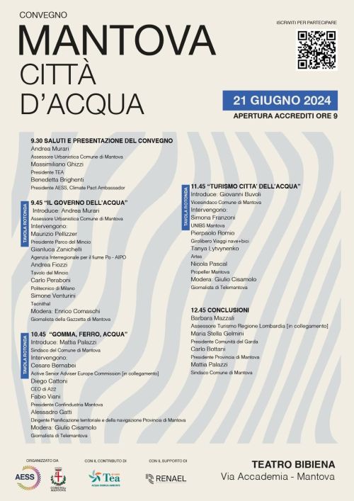 Il convegno, con ingresso libero e gratuito al pubblico (previa registrazione), è organizzato da Aess e Comune di Mantova con il contributo di Tea e il supporto di Renael.