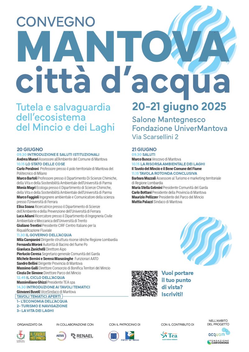 Il convegno Mantova Città d’Acqua si configura come un momento di “stati generali” delle acque, volto a costruire un linguaggio comune tra istituzioni, scienza, cittadinanza e portatori di interesse. Un’occasione pubblica per ascoltare, raccogliere e unire visioni e proposte, promuovendo una nuova cultura dell’acqua, in chiave sostenibile e partecipata.