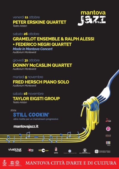 Il cartellone di quest’anno si incardina solidamente su due grandi maestri della tradizione contemporanea, il pianista Fred Hersch (martedì 5 novembre) e il batterista Peter Erskine (venerdì 11 ottobre), e su due maestri più giovani, Taylor Eigsti (sabato 16 novembre) e Donny McCaslin (giovedì 31 ottobre), che stanno contribuendo a ridisegnare il paesaggio jazzistico dei nostri giorni. Hersch, maestro conclamato di Brad Mehldau, si esibirà in splendida solitudine, Erskine con un quartetto nel quale spicca la voce saxofonistica dell’immenso Bob Mintzer. Il quinto evento, non meno importante, è dedicato alla valorizzazione del panorama jazzistico mantovano con il doppio concerto della Gramelot Ensemble di Simone Guiducci, arricchito dalla formidabile tromba di Ralph Alessi, e del Federico Negri Quartet (sabato 26 ottobre).
