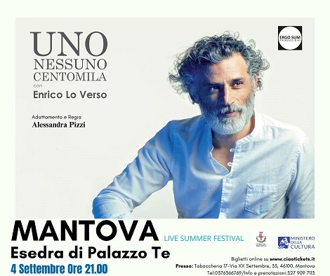 “Uno nessuno centomila”, spettacolo basato sul celebre omonimo libro di Luigi Pirandello, interpretato dall’attore Enrico Lo Verso, con regia di Alessandra Pizzi, andrà in scena il 4 settembre, alle 21, a Mantova presso Esedra di Palazzo Te.