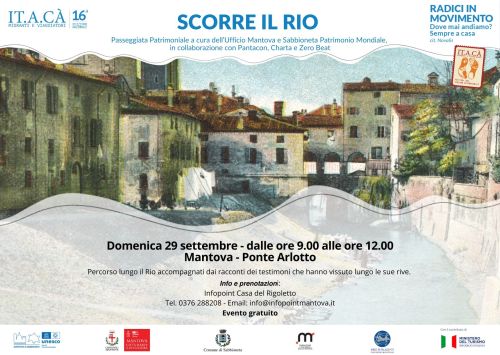 Domenica 29 settembre si terrà l’iniziativa “Scorre il Rio. Passeggiata Patrimoniale”, che prevede una camminata in gruppo, con partenza alle ore 9, da Ponte Arlotto-Porto Catena, in via Fondamenta 1, fino a concludersi alle Pescherie di Giulio Romano.