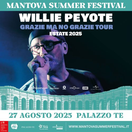 Anche Willie Peyote all’esedra di Palazzo Te. Mantova Summer Festival conferma oggi un nuovo appuntamento, WILLIE PEYOTE sarà sul prestigioso palco mantovano il 27 agosto per una tappa di “GRAZIE MA NO GRAZIE TOUR - ESTATE 2025”, la serie di date che porterà questa estate il cantautore torinese e la sua band in giro per tutta l’Italia per festeggiare l’uscita del suo ultimo album “SULLA RIVA DEL FIUME” che contiene il brano in gara all’ultimo festival di Sanremo “GRAZIE MA NO GRAZIE” che tante soddisfazioni sta regalando a Peyote sia in radio che nelle classifiche.