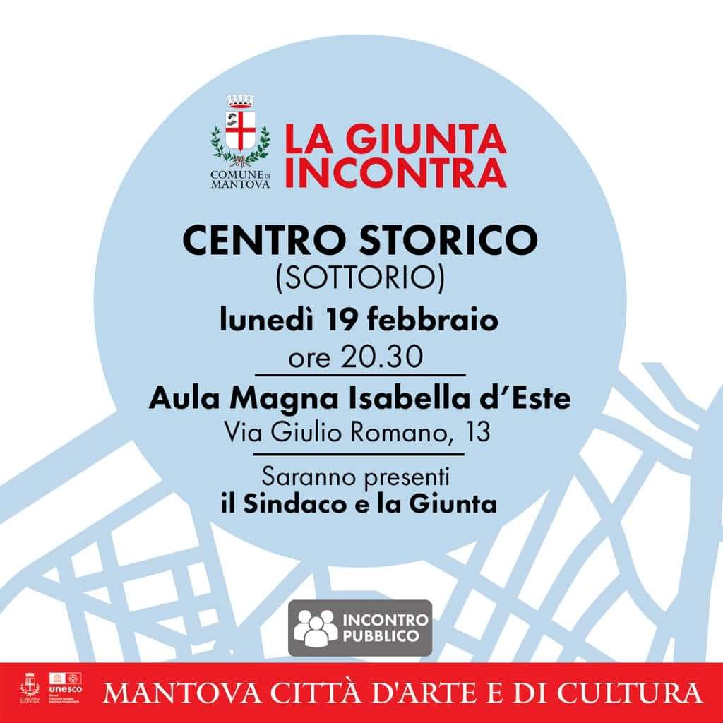 Tornano gli appuntamenti della Giunta comunale di Mantova nei quartieri per incontrare i cittadini. Lunedì 19 febbraio alle 20,30, nell’Aula Magna Isabella d’Este in via Giulio Romano 13 si terrà l’incontro pubblico con i residenti nel centro storico che abitano a sud del Rio.