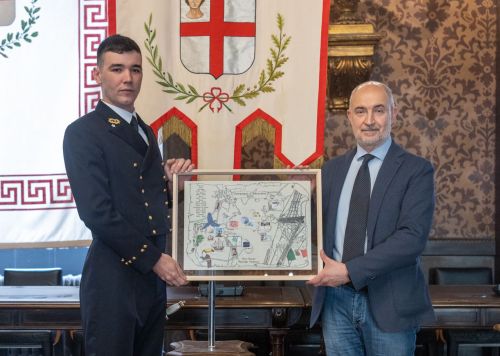 Il Presidente del Consiglio Comunale di Mantova Massimo Allegretti, venerdì 29 marzo, ha ricevuto nella sala Consiliare del Municipio l’allievo dell’Accademia Navale di Livorno Edoardo Cavazzoli. Il giovane mantovano, ventiduenne, entrato nelle forze armate e attualmente al secondo anno del corso Allievi Ufficiali, ha deciso di sua volontà di donare alla città di Mantova una preziosa pergamena con applicati i francobolli relativi alle diverse tappe della lunga traversata che ha compiuto, in cento giorni di navigazione, con la Nave Scuola Amerigo Vespucci durante la Campagna d’Istruzione 2023.