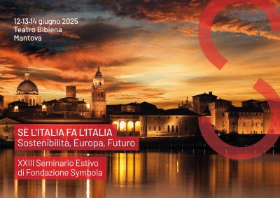 Al via quindi il 12 giugno, nel Teatro Bibiena, il Seminario Estivo di Symbola a Mantova – intitolato quest’anno “Se l’Italia fa l’Italia - Sostenibilità, Europa, Futuro” – promosso dalla Fondazione Symbola, Unioncamere, Comune di Mantova, Gruppo Athesis, Gruppo Tea, Gruppo Saviola, Fassa Bortolo, Arvedi, in collaborazione con Fondazione Fratelli Tutti, Giornata Mondiale dei Bambini, Ufficio Nazionale per i Problemi Sociali e il Lavoro della CEI, ANCI.